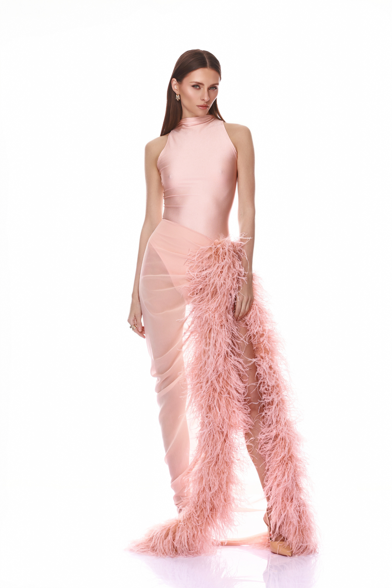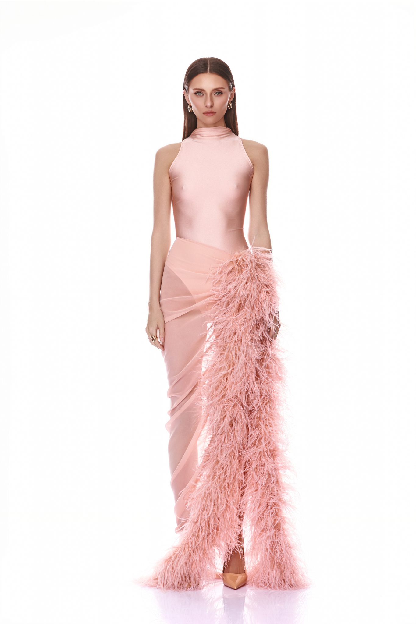 Complete your look with the Gaia Blush Mesh Bodysuit — a chic, sophisticated pairing to the Elle Blush Skirt.