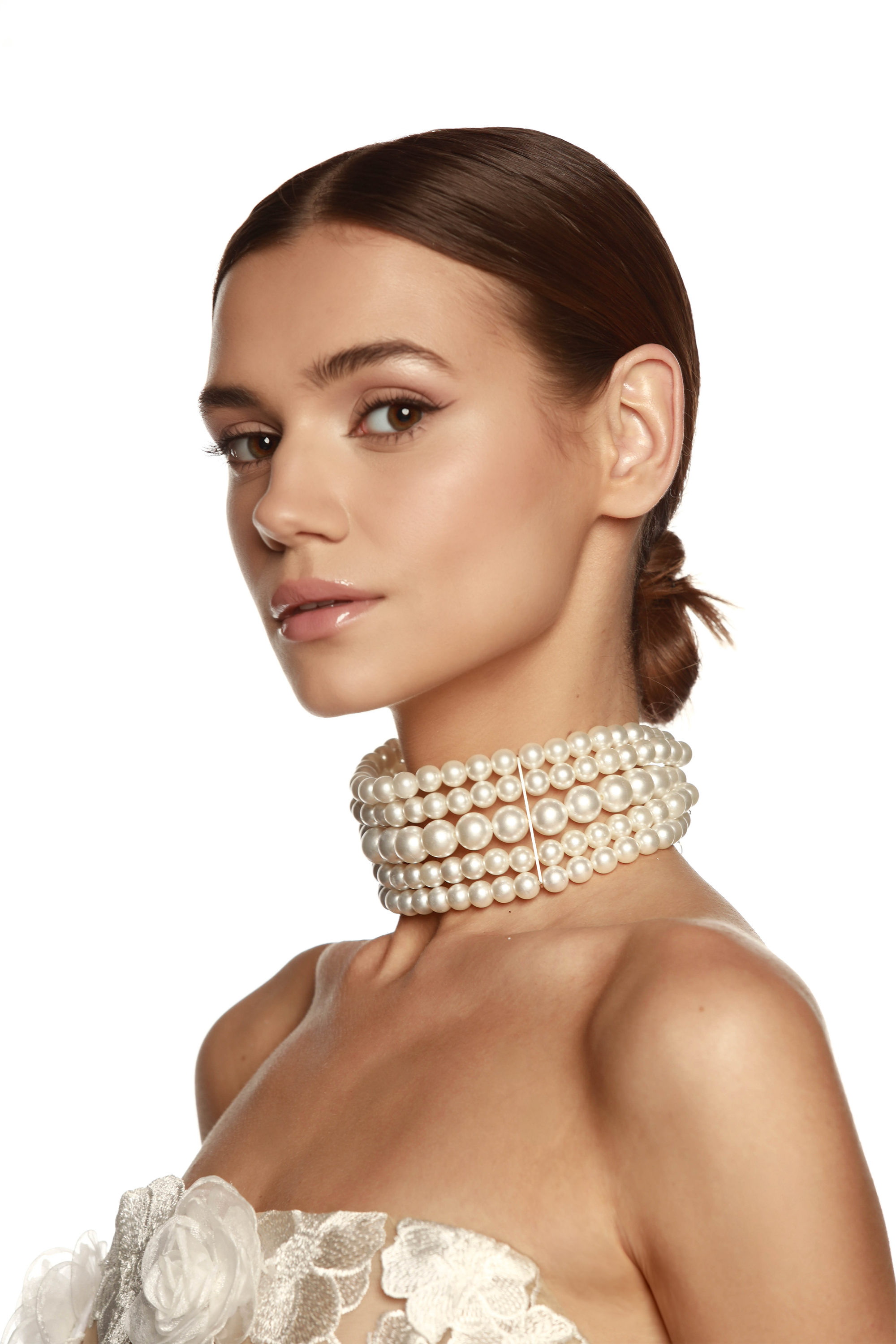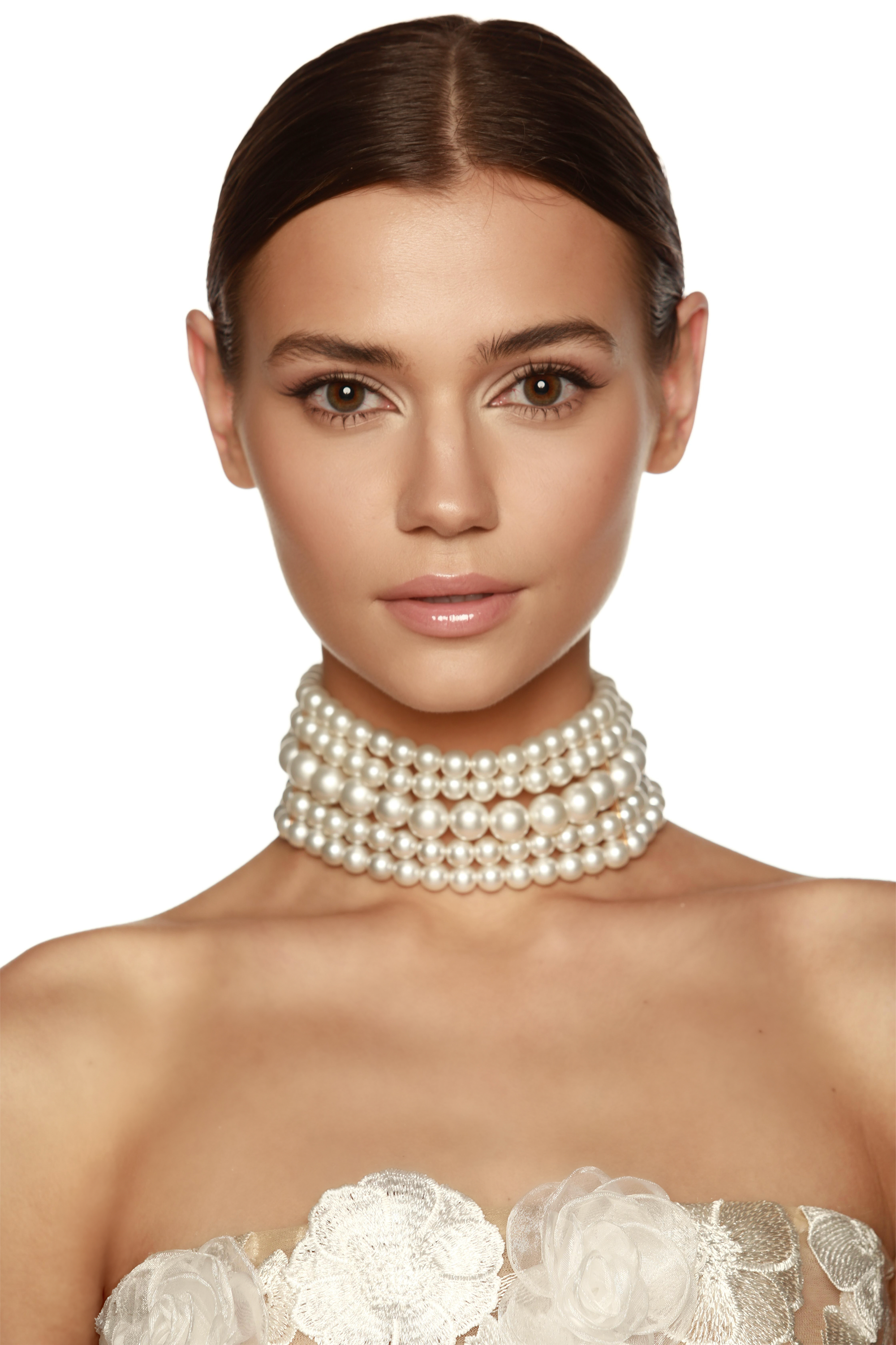 Embrace bridal elegance with the 5 Strand Pearl Choker. The perfect accessory for any bridal event, from rehearsal dinner to after-party.