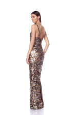 Shine bright in our Allegra Gold Multi Maxi Dress, a show-stopping ensemble that brings luxury and sparkle to every event.