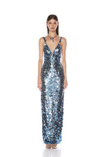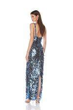 Dive into a sea of glamour with the Allegra Ocean Blue Sequin Maxi Dress. Crafted to turn heads, this stunning gown features shimmering sequins that catch the light from every angle.