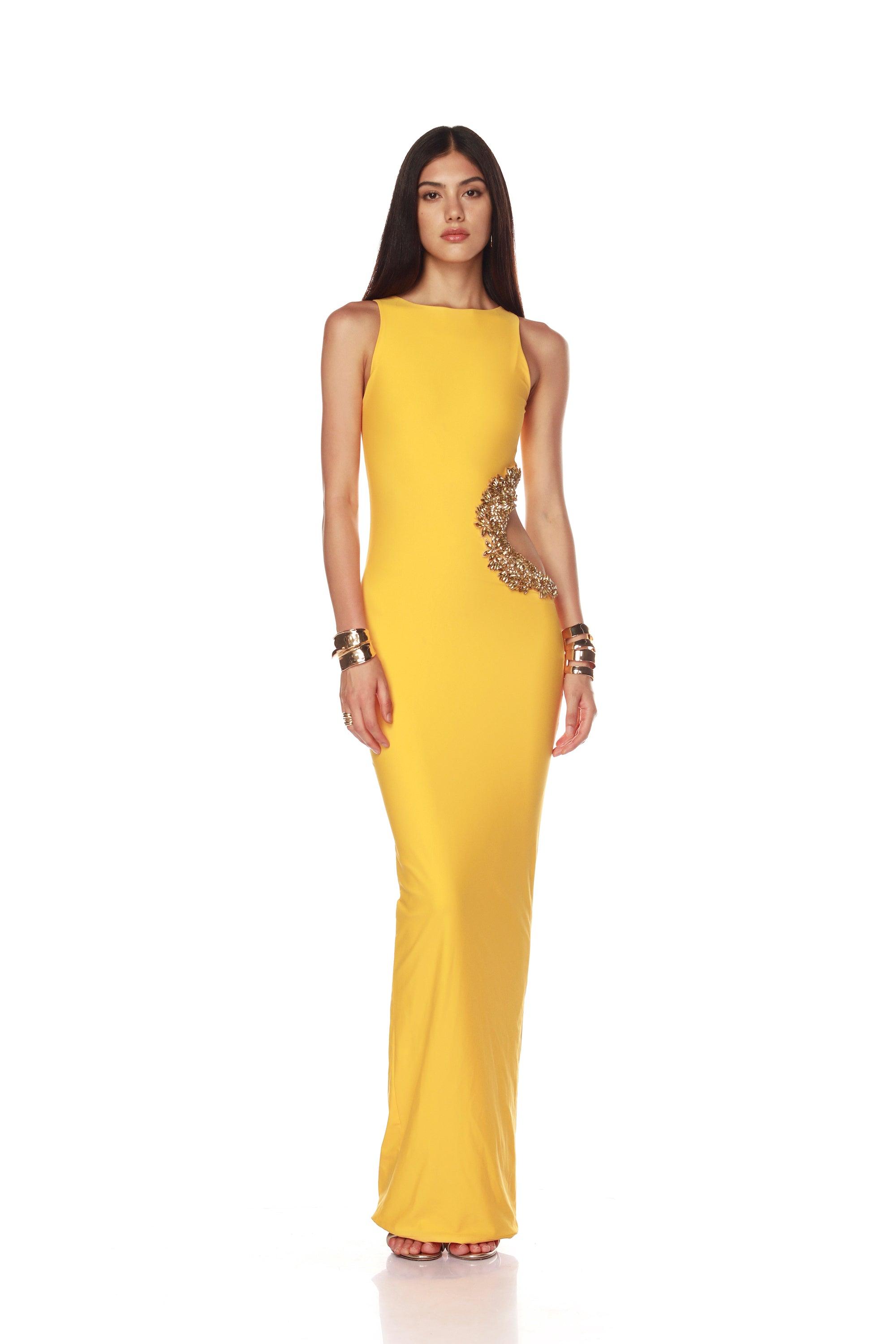 Camila Yellow Rhinestone Cutout Maxi Dress