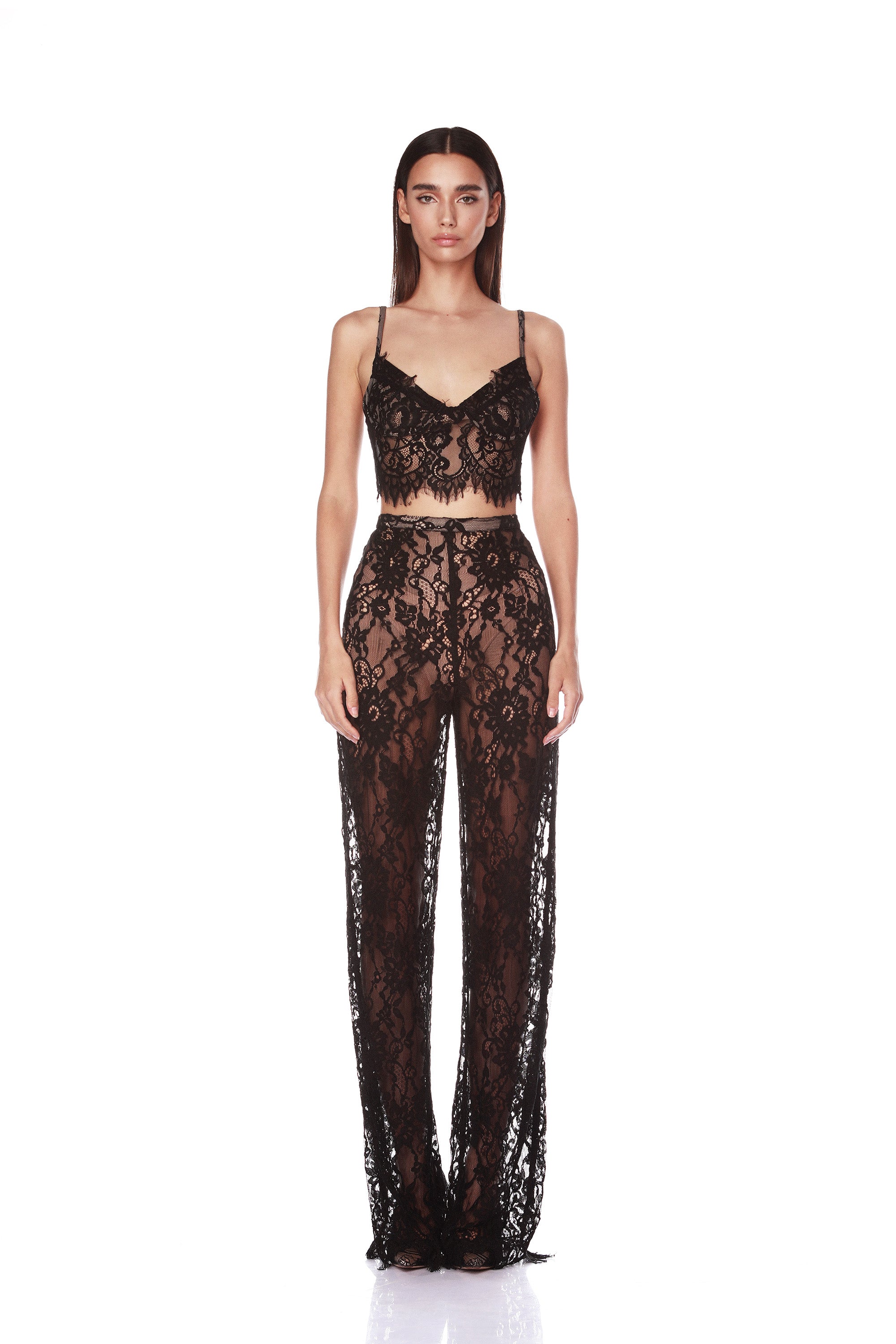 Complete your look with the Capri Noir Lace Bralette — a natural pairing to the Capri Noir Lace Pant.
