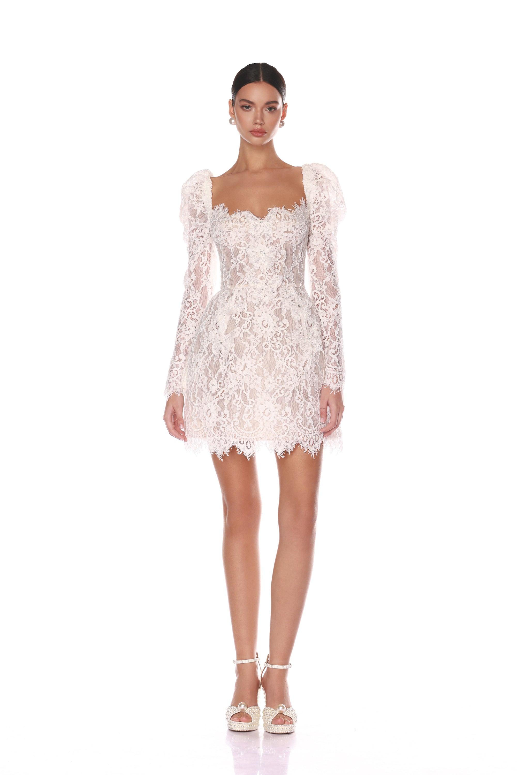 Embrace feminine grace in our Colette Lace Long Sleeve Mini Dress.