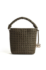 Sofia Woven Leather Midi Bag in Khaki Napa Leather